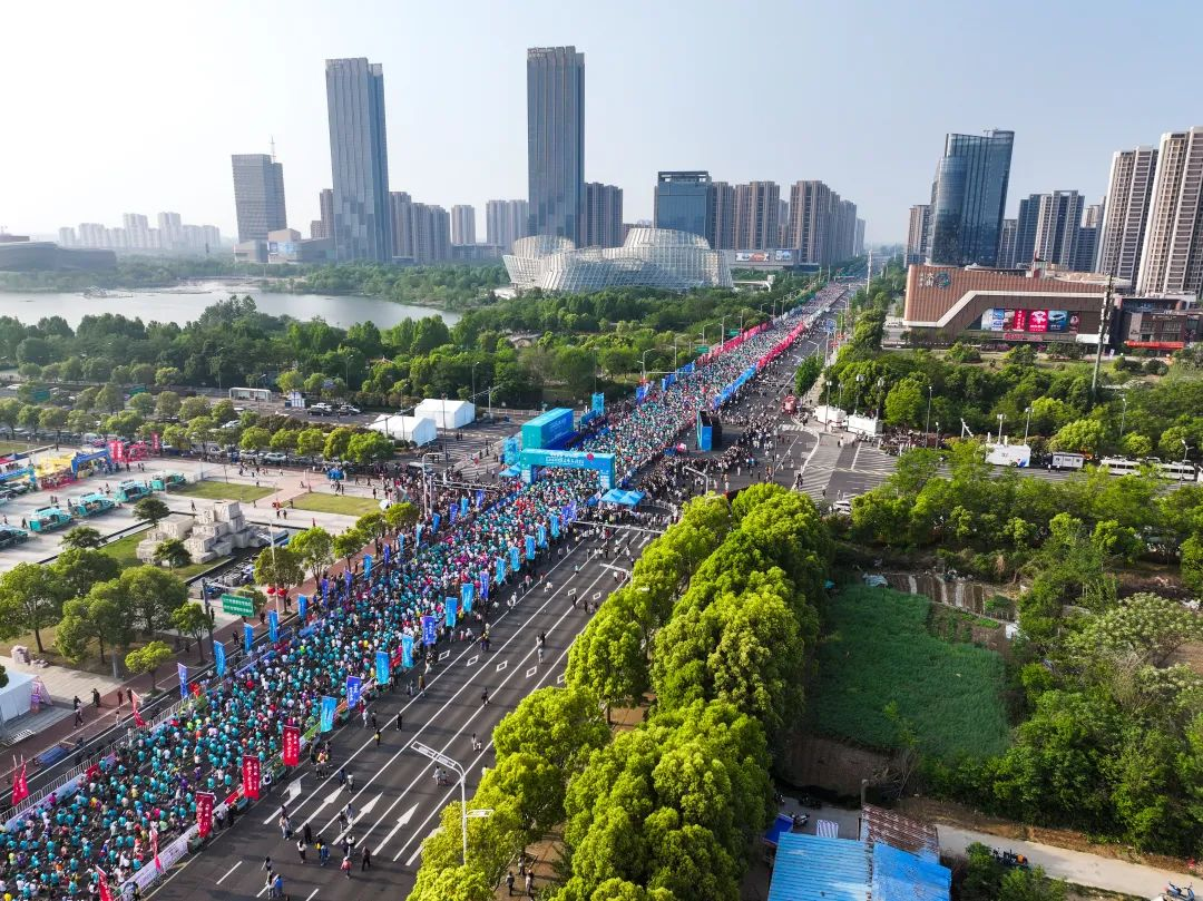 一场马拉松,是一座城市全民健身热潮的最好展示。在城市道路上,人们迈开脚步,舒展笑颜,自信奔跑。跑步绘就城市的风景,融入人们的生活。奔跑阜阳,每一位选手都展现着速度、温度和热度。