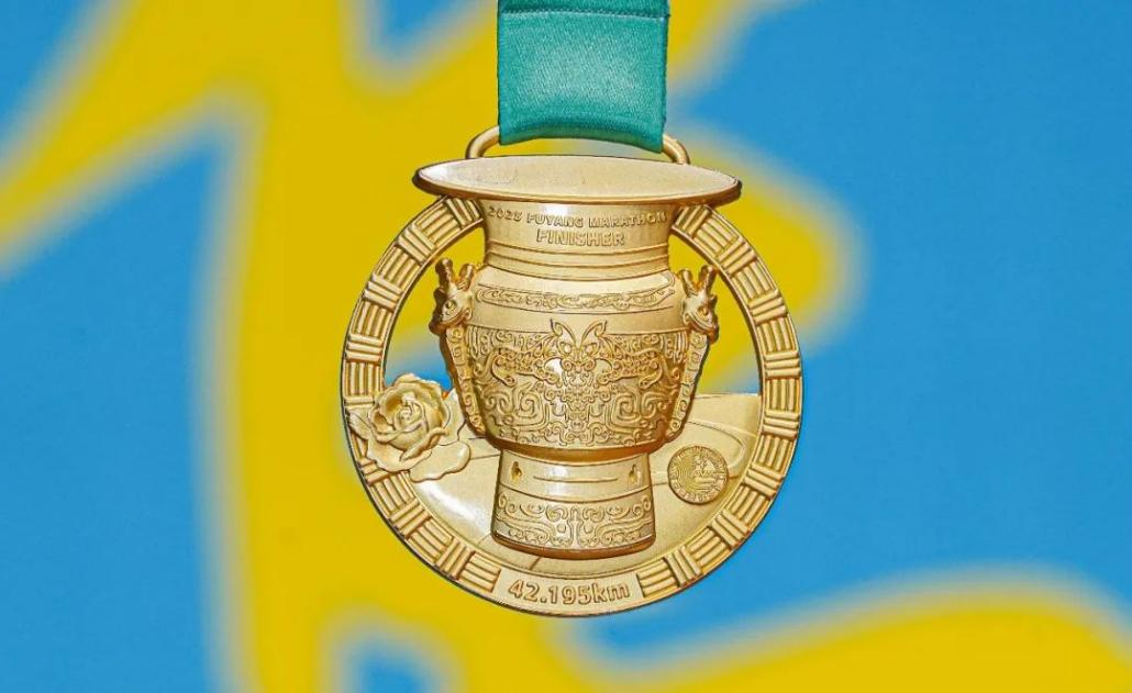 最美人间四月天。月季花赛道月季沿途绽放,用最美的姿态迎接着每一位参赛者,为选手带来“人在花中跑”的浪漫体验。赛事奖牌设计独具匠心,将阜阳的历史文化、地域特色融入其中。更特别融入龙虎尊这一珍贵文化遗产元素,让历史瑰宝、城市景观与自然花卉在方寸之间同频共鸣,彰显阜阳“千年文脉”传承的深厚与丰盈。每一块奖牌都承载着阜阳的城市记忆,不仅是对选手完赛的肯定,更是阜阳送给每一位跑友的独特礼物。