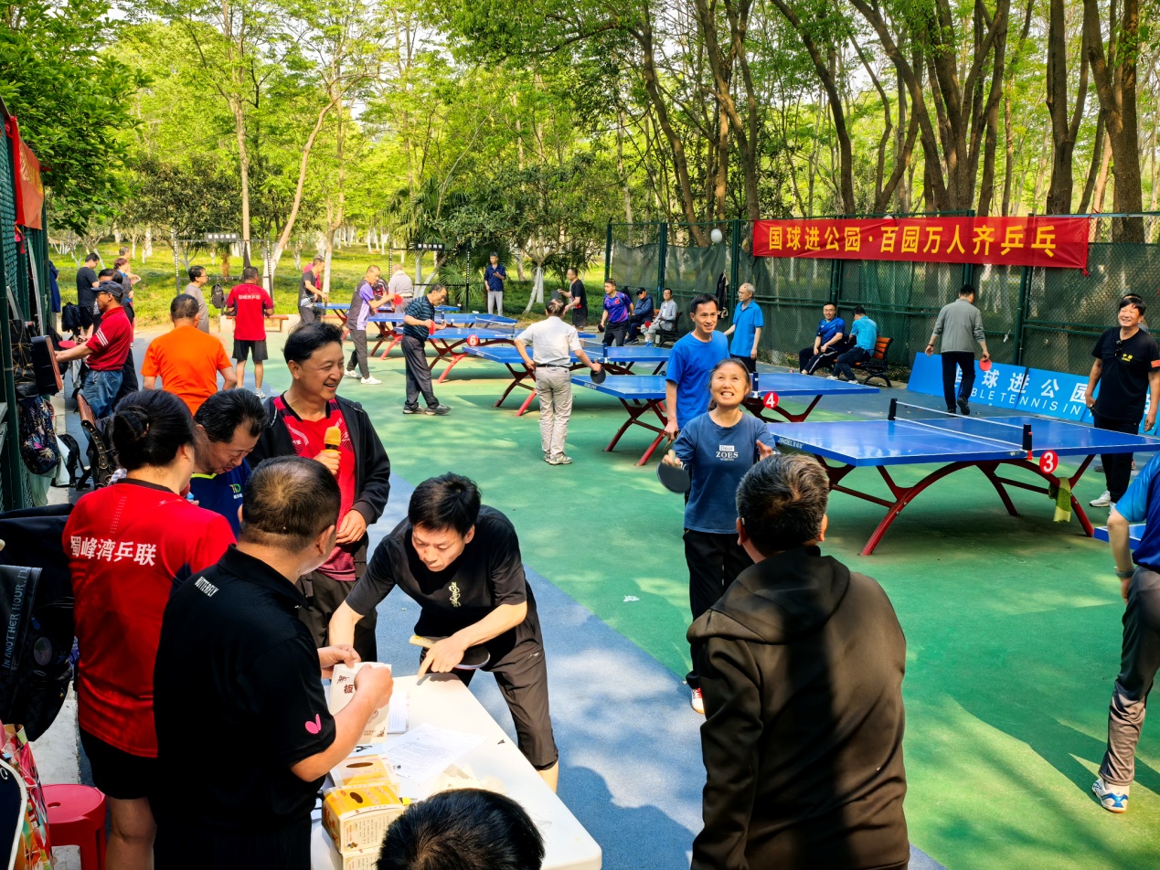 “蜀峰湾体育公园是我们球友永远的家园。”冠军获得者伍先杰在获奖后发言。蜀峰湾体育公园位处大蜀山脚下,这里湖光山色,环境优美,吸引了众多乒乓球爱好者前来健身娱乐。为了引导广大球友有序开展各类比赛,在汪冠辉董事长的热心赞助支持下,公园成了球友俱乐部,每逢双休和节假日,组织开展乒乓球比赛。多年来,蜀峰湾体育公园乒乓球场已成为网红打卡地,甚至吸引了深圳、成都等外地球友慕名前来交流技艺。