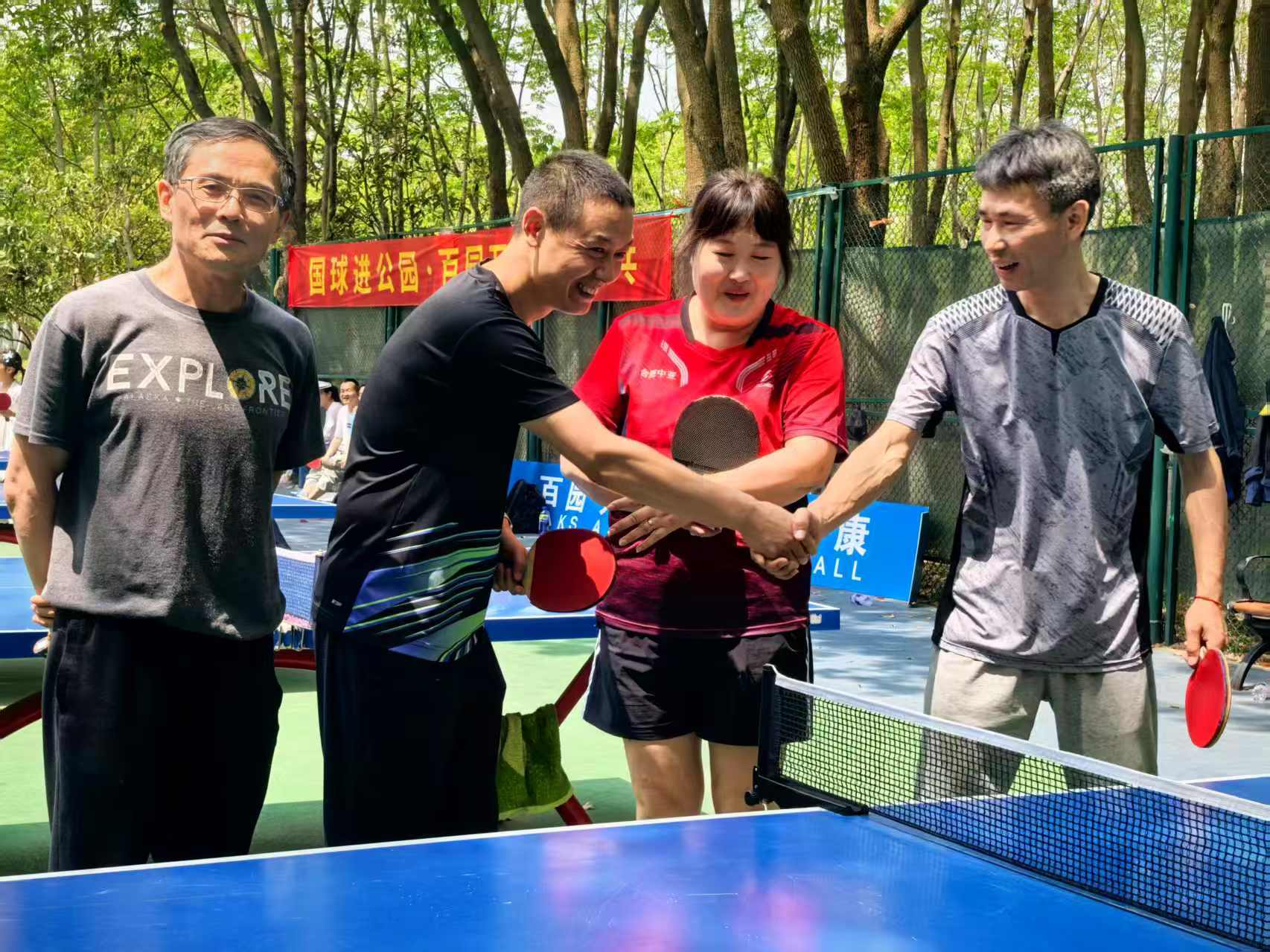 “国球进公园”户外乒乓球系列赛事是中国乒乓球协会响应全民健身号召的重要举措,旨在通过走进公园开展户外乒乓球赛事,让更多人参与到乒乓球运动中来的公益活动。2025年“国球进公园·百园万人齐乒乓”双打比赛,是中国乒协第二届“国球进公园”全国户外乒乓球系列赛事。今年的口号是“国球进公园·乒乓促健康”,2025年4月20 日, 全国各地百家公园万人同赛。